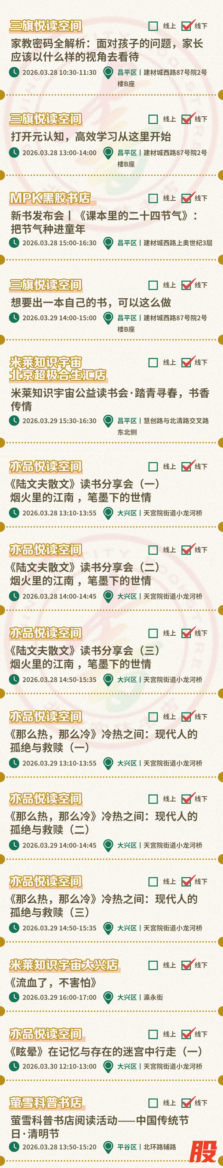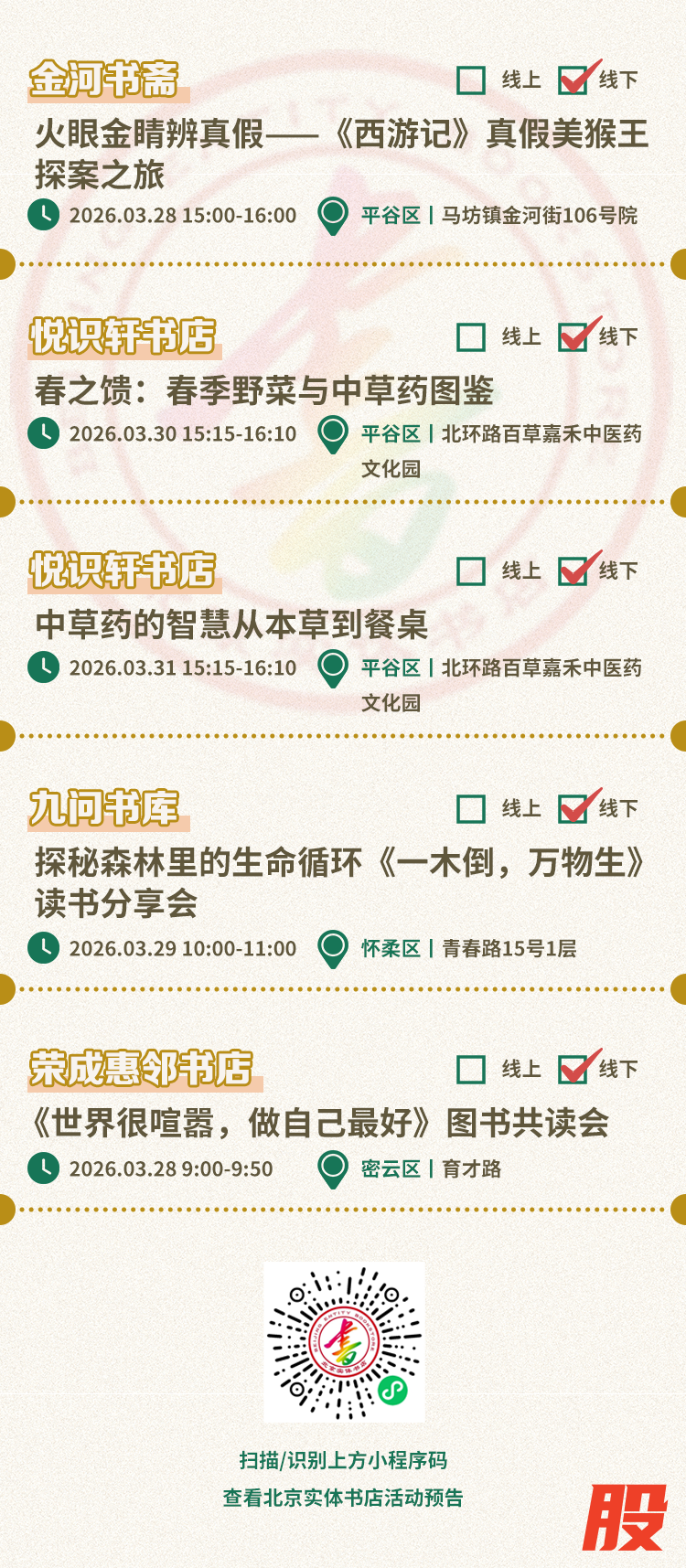 以书为渡,在阅读里安顿自己 | 北京实体书店活动预告(3月28日~4月3...首都新闻出版2026-03-27 10:34